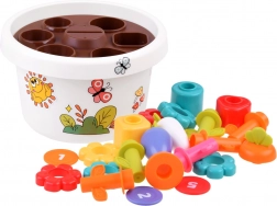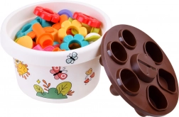 Al centro della base della fioriera si trova un'apertura per inserire i gettoni, migliorando la coordinazione mano-occhio. Il set include anche adesivi colorati per decorare la fioriera, sviluppando così la creatività dei bambini.
