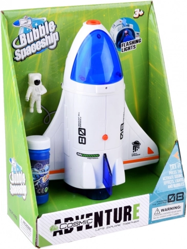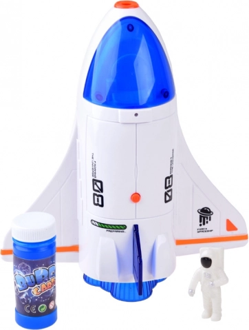 La macchina per bolle a forma di razzo è il sogno di ogni piccolo avventuriero. Una volta inserita la bottiglia con la soluzione nella parte inferiore del razzo e premuto il pulsante sul retro, inizia la magia delle bolle colorate. I bambini possono osservare mentre il razzo si muove e bolle felici fuoriescono dalla parte anteriore.
