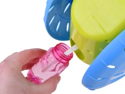 Bolle di sapone sono un divertimento preferito dai bambini di tutte le età. Con questo fantastico carrello a spinta che produce bolle, il tuo bambino scoprirà la magia delle bolle! Basta fissare la bottiglia con il liquido speciale e godersi il rilascio delle bolle arcobaleno mentre si è in movimento.