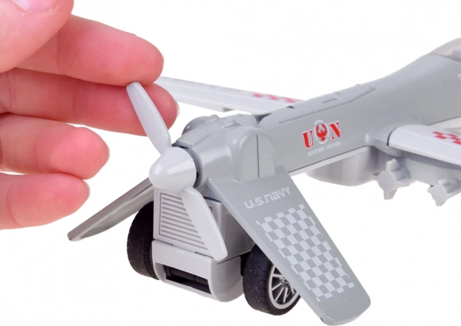 Il modello è realizzato in metallo e plastica con ali pieghevoli ed elica funzionante, con ogni dettaglio curato attentamente.