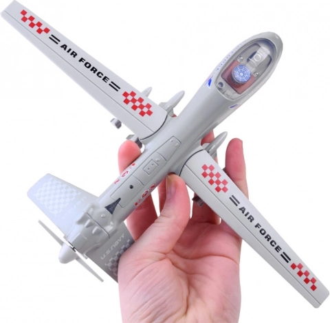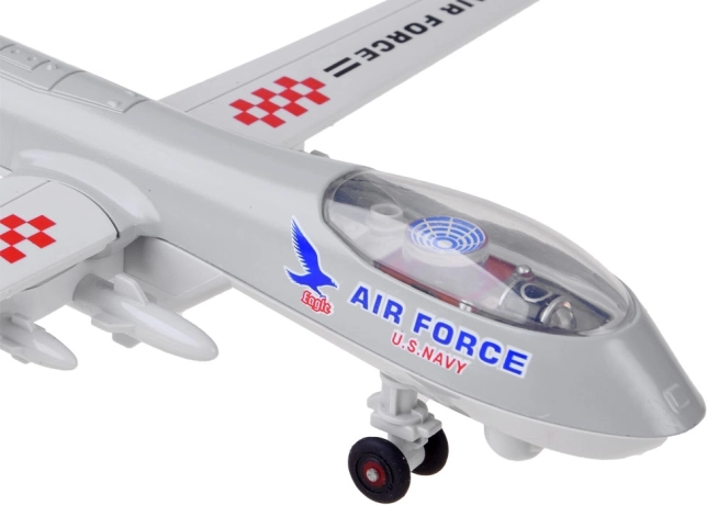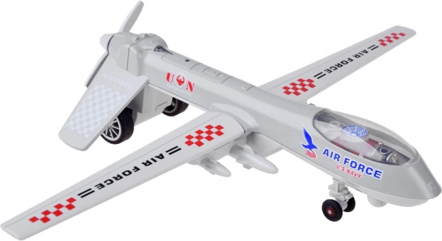 Il modello in metallo del drone offre non solo dettagli precisi, ma anche ali pieghevoli e un elica rotante, rendendolo un passatempo ideale sia per bambini che per adulti. Il drone è dotato di una funzione di pull back, che consente di avanzare dopo essere stati tirati indietro. Questa caratteristica, insieme agli effetti sonori e luminosi, dà la sensazione di una vera azione aerea.