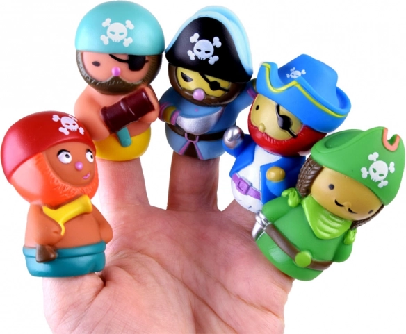 Set di cinque burattini da dito pirata consente di creare storie piratesche uniche. Ogni burattino ha il suo personaggio colorato e arricchisce i vostri giochi con un autentico tocco pirata.