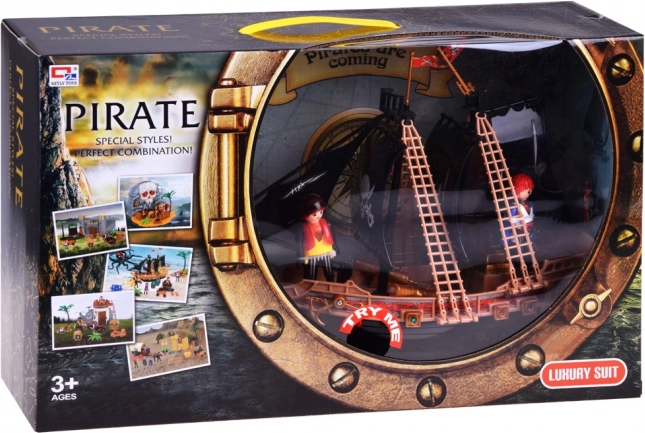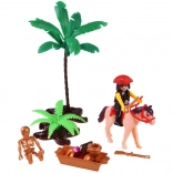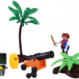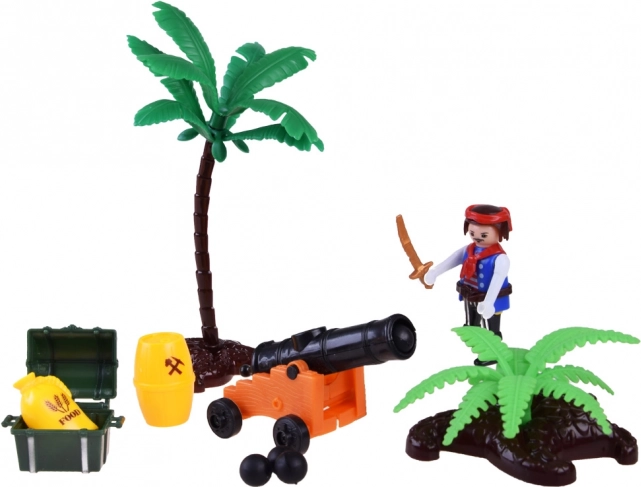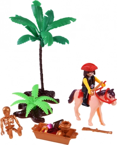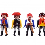 Quattro personaggi diversi e un compagno animale creano un equipaggio vivace. Aggiungi la scialuppa, la palma e le botti e nasceranno infiniti racconti di pirati.
