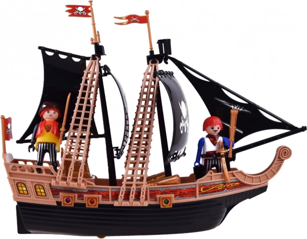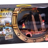 Il pulsante laterale attiva suoni di battaglia e luci lampeggianti al timone e sul ponte. Grazie alle ruote, la nave scorre facilmente sul pavimento – ideale per grandi spedizioni navali.
