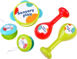 I diversi strumenti a percussione sviluppano la percezione uditiva, il senso del ritmo e la motricità fine. I colori vivaci motivano i bambini a esplorare attivamente i suoni.