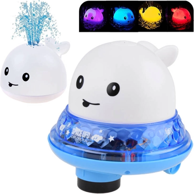 Una volta immersa, la balena si avvia da sola, nebulizza l’acqua e risplende con luci colorate: il tocco perfetto per il bagnetto serale.