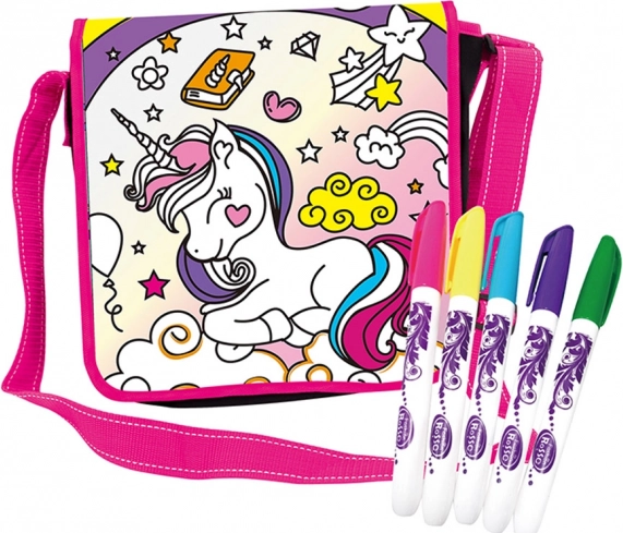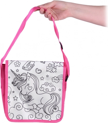 La creativa borsa a tracolla per bambini con motivo a unicorno farà felici i piccoli artisti dai 6 anni in su. I bambini possono colorare la borsetta in tessuto con i pennarelli inclusi (blu, rosa, viola, verde, giallo) e, dopo il lavaggio, colorarla di nuovo e ancora. La tracolla regolabile, le dimensioni compatte 23 × 23 × 5 cm e il design adorabile rendono la borsa un ottimo accessorio per ogni giorno.