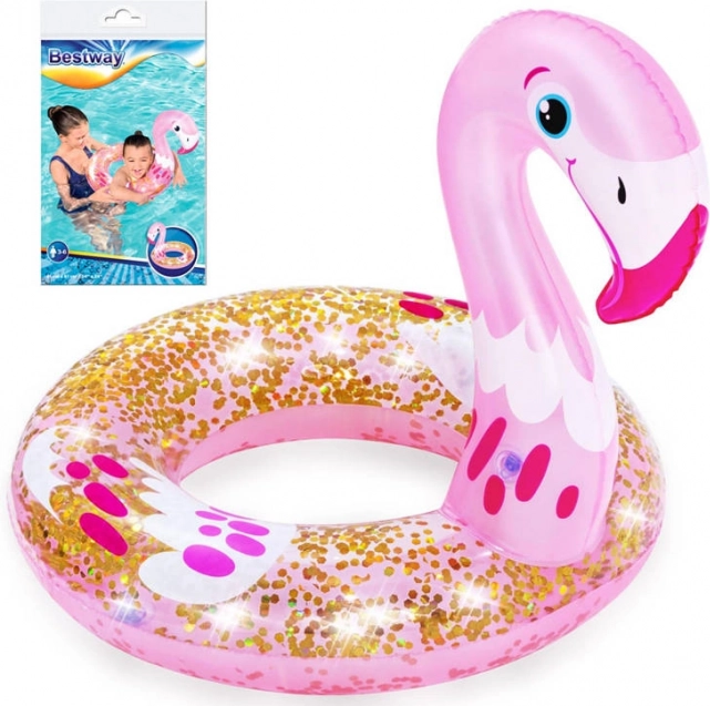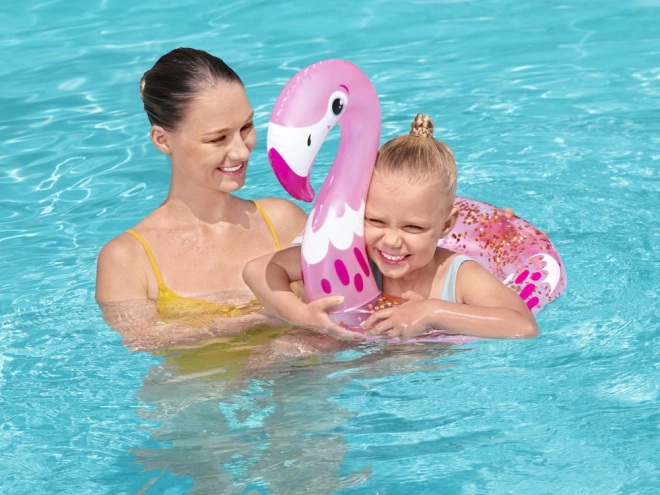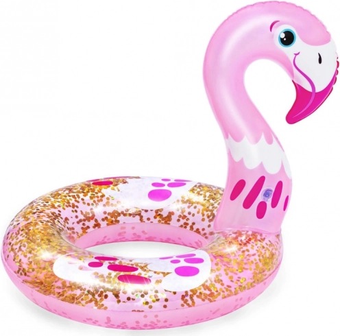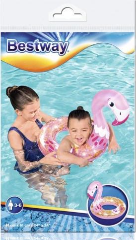 Il grazioso lettino gonfiabile rotondo a forma di fenicottero rosa del marchio Bestway regala tanto divertimento in acqua ai bambini dai 3 ai 6 anni. La parte trasparente con brillantini luccicanti brilla splendidamente al sole, il resistente materiale in PVC garantisce una lunga durata e le dimensioni compatte consentono facile trasporto in spiaggia e in piscina.