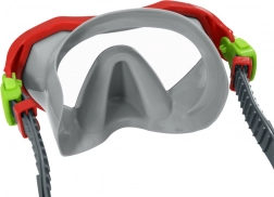 La lente in policarbonato con filtro UV protegge gli occhi dal sole anche durante il nuoto in superficie. La cinghia divisa regolabile consente un serraggio rapido e preciso per diverse dimensioni della testa, così la maschera rimane in posizione anche durante i tuffi.
