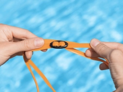 Cinturino in silicone con meccanismo rapido per adattare immediatamente la misura. Tenuta stabile a ogni bracciata.