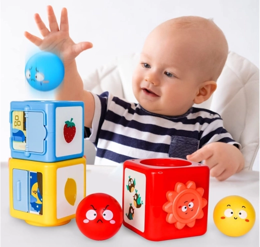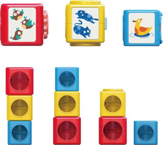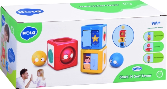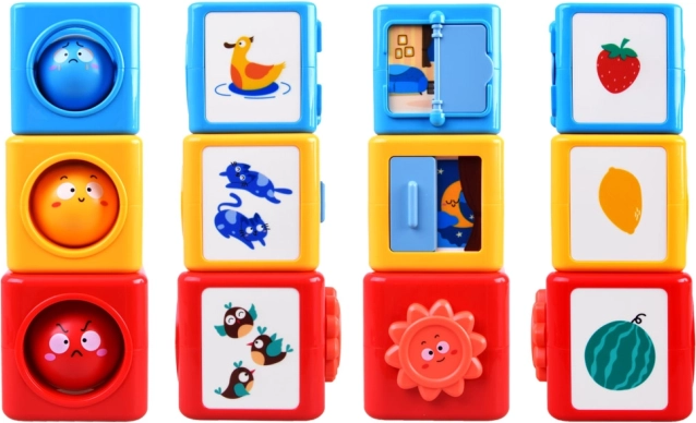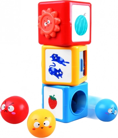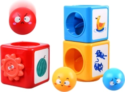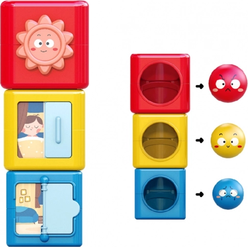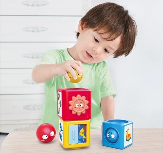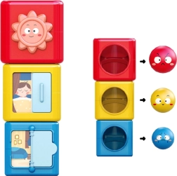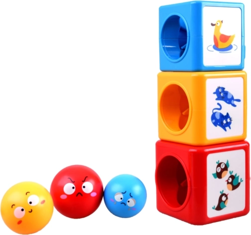 All'interno di questa costruzione colorata troverete sfere e cubi che possono essere impilati e smistati. Il giocattolo insegna ai bambini a riconoscere i colori, a distinguere le emozioni e a esplorare il mondo attraverso il gioco. Aiuta a sviluppare il pensiero spaziale, le capacità analitiche e la motricità fine.