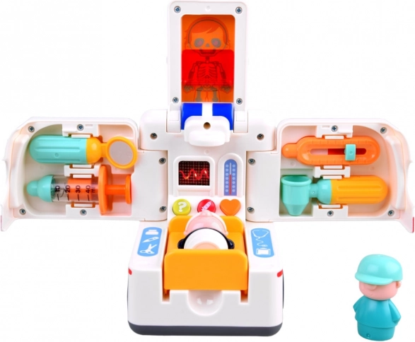 Attrezzatura medica speciale: - monitor ECG - radiografia del torace - 3 pulsanti medici (cuore, siringa, punto interrogativo verde) per effetti sonori legati alla salute.