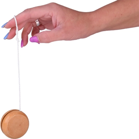 Tornate alle origini con un giocattolo senza tempo che non stanca mai. Lo yo-yo in legno con finitura liscia si impugna alla perfezione, ruota in modo fluido e, grazie al cordino lungo, consente di imparare facilmente anche i trucchi più impegnativi. Basta infilare il dito nel cappio, avvolgere correttamente il cordino, lasciare scendere lo yo-yo e, al momento giusto, dare un leggero strattone – e il divertimento può iniziare.
