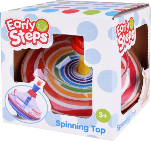 Questo intramontabile gioco rotante porta gioia attraverso le generazioni. È sufficiente premere più volte il pistone superiore e la trottola ruoterà attorno al proprio asse: i cerchi concentrici colorati creano un affascinante effetto arcobaleno che coinvolge i bambini. Durante la rotazione la trottola emette un suono caratteristico che amplifica il divertimento.