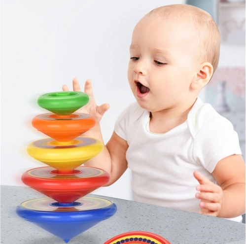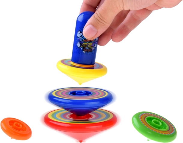 Osservare e controllare le trottole in rotazione favorisce la motricità fine, la coordinazione occhio–mano e la concentrazione nei bambini in età prescolare.