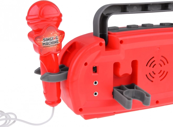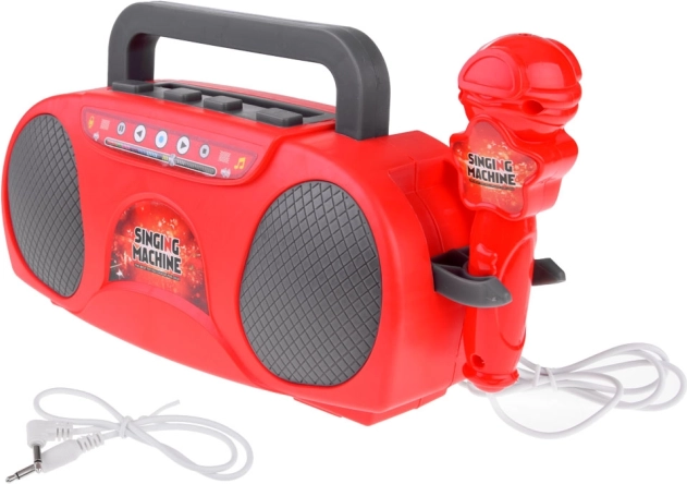 Questo karaoke per bambini nel vivace colore rosso offre tantissimo divertimento: dal cantare con il microfono alla riproduzione delle canzoni preferite dal cellulare o dal lettore MP3. Collegando il microfono, il dispositivo amplifica la voce, così i piccoli cantanti brilleranno come su un vero palco. Gli effetti luminosi integrati aggiungono la giusta atmosfera a ogni esibizione.