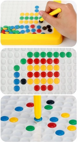 Scoprite un modo ludico di imparare con il mosaico magnetico YOKOMISIADA – una tavola creativa con perni colorati e carte modello. I bambini allenano la motricità fine, il riconoscimento dei colori, la logica e la pazienza mentre compongono immagini sulla griglia. Grazie alle dimensioni compatte e alla facile impilabilità dei perni è ideale per asili, scuole e casa.