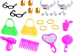 Un ampio set per bambole alte circa 30 cm offre tutto ciò di cui i piccoli stilisti hanno bisogno: 10 abitini estivi, un'ampia collezione di scarpe, borsette e gioielli, ma anche appendini, attrezzatura sportiva e accessori da cucina e per le pulizie. Perfetto per un gioco creativo e per creare storie di moda e di casa.