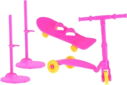 Inclusi utensili da cucina e per le pulizie e attrezzatura sportiva come skateboard e monopattino. Ottimo per scenette creative.