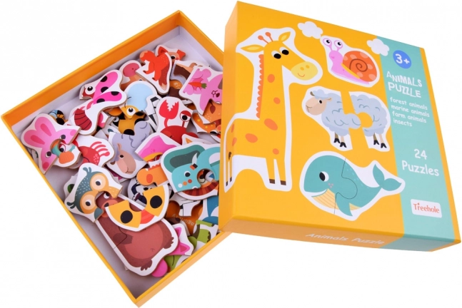 Scoprite un set divertente per i più piccoli: 24 semplici puzzle a due pezzi con animaletti che sviluppano motricità fine, pensiero logico e memoria visiva. Ogni immagine è colorata e chiara, ideale per bambini dai 3 anni. Sul retro dei pezzi sono inoltre riportati i nomi degli animali in lingue straniere per un apprendimento del vocabolario naturale durante il gioco.