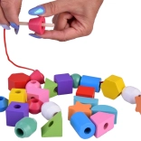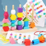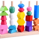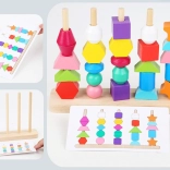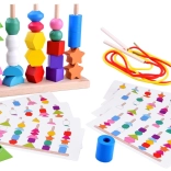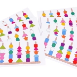 Infilate le perline sui lacci oppure impilate le forme sui pioli seguendo i modelli. I bambini scelgono ciò che li diverte e, allo stesso tempo, allenano motricità e concentrazione.