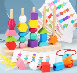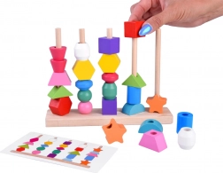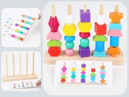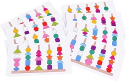 Infilate le perline sui lacci oppure impilate le forme sui pioli seguendo i modelli. I bambini scelgono ciò che li diverte e, allo stesso tempo, allenano motricità e concentrazione.