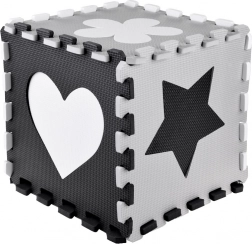 Il tappetino da gioco in schiuma EVA protegge dal freddo del pavimento, attenua le cadute e favorisce lo sviluppo della motricità fine e grossa. Il design neutro e a contrasto con cuori, stelle e altre forme si adatta a qualsiasi cameretta o soggiorno.