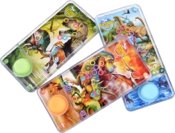 Il gioco d’acqua con dinosauri è ideale per giocatori piccoli e grandi che desiderano migliorare coordinazione e pazienza. Il controllo è facile: con un solo pulsante metti in movimento gli anelli colorati chiusi nella camera d’acqua e cerchi di posizionarli sui piolini. Questo tipo di gioco è perfetto da portare in viaggio grazie alle dimensioni compatte, che permettono di avere il divertimento sempre a portata di mano, sia a scuola che in vacanza. Il gioco è arricchito da attraenti illustrazioni preistoriche di dinosauri, che conquisteranno ogni amante di queste affascinanti creature.