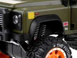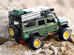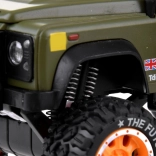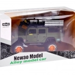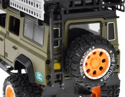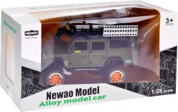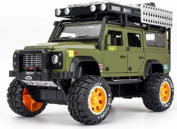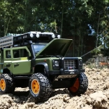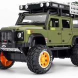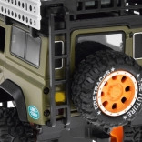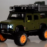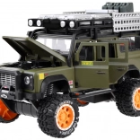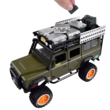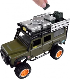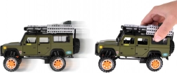 Scopri il veicolo fuoristrada in metallo ben realizzato per ogni piccolo avventuriero. Il veicolo è in un elegante colore verde con dettagli ben sviluppati come il portapacchi con taniche e scatole.