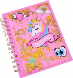 Notebook con sfondo rosa e scintillio dorato, si distingue per il suo design magico che invita a scrivere e disegnare.