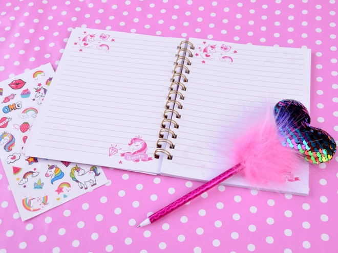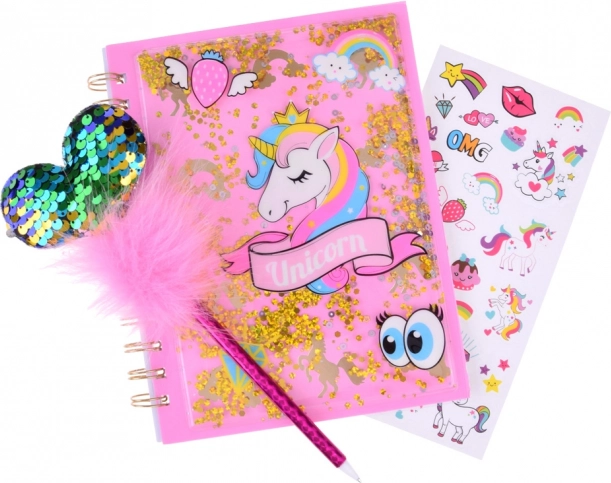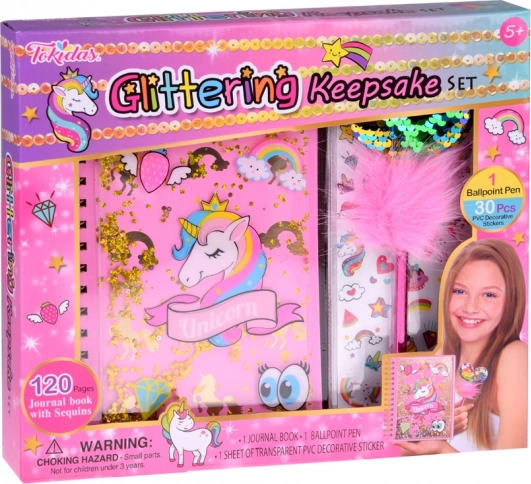 Questo magico diario con motivo unicorno offre lo spazio ideale per annotare i tuoi pensieri, segreti e idee. La copertina lucida decorata con particelle scintillanti conferisce al diario un aspetto unico e attraente. Il set invitante include anche una penna rosa con pompon soffice e cuore scintillante, insieme ad adesivi colorati per decorazioni creative.