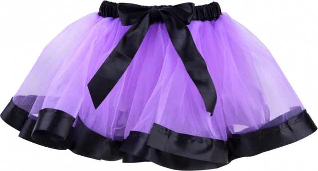 Tulle viola multistrato con bordo in raso che dona volume e leggerezza. Grazie all’elastico in vita, veste comoda e si adatta alla figura.