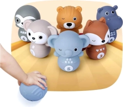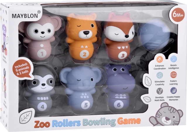 Il gioco Bowling con animali Zoo porta ai bambini il piacere di giocare e al contempo li aiuta ad apprendere nuove abilità. Ogni animaletto ha una cifra da 1 a 6 sulla pancia e forme geometriche che aiutano nell'apprendimento e nel riconoscimento.