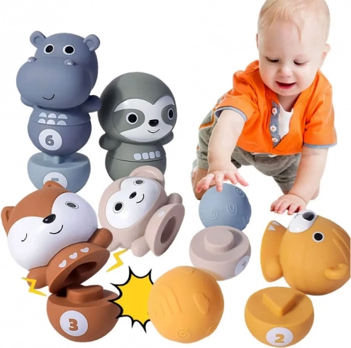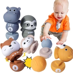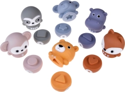 Posiziona i birilli affiancati e i bambini possono abbattere gli allegri animaletti con una palla. Una volta rovesciati, si dividono a metà, offrendo un'ulteriore variazione di gioco. I bambini così allenano le loro abilità motorie e il pensiero logico ricomponendo gli animaletti secondo le forme e i numeri.