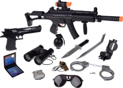 Il set fornisce un equipaggiamento completo per il gioco realistico di un ufficiale di polizia o militare.