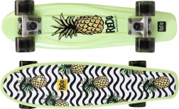 Questo skateboard è caratterizzato dal suo aspetto vivace con una grafica di ananas e motivi ondulati in bianco e nero, che forniscono un design divertente e accattivante.