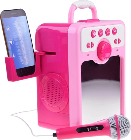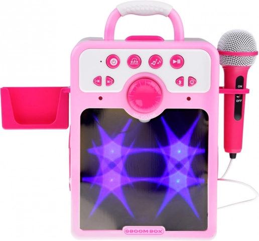 Il boombox rosa per bambini è un intrattenimento ideale per ogni piccolo amante della musica e del karaoke. Questo fantastico altoparlante offre molte funzioni ed è dotato di un pannello frontale a specchio con effetti luminosi colorati.