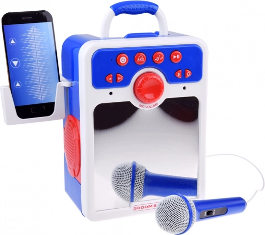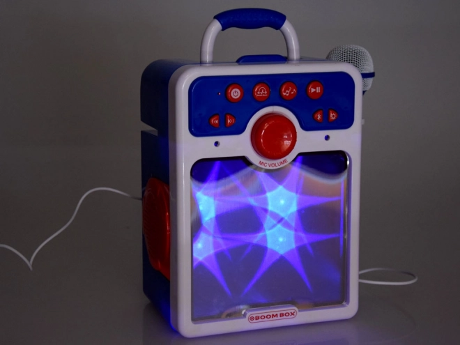 Goditi musica e divertimento con il nostro Boombox blu per bambini! Questo fantastico altoparlante è ideale per i bambini che amano cantare, fare i DJ o ballare. Offre un divertimento sorprendente con il karaoke. Realizzato in plastica di alta qualità con grande attenzione ai dettagli, questo altoparlante colpisce per il pannello frontale a specchio che, una volta acceso, lampeggia e riflette luci colorate.
