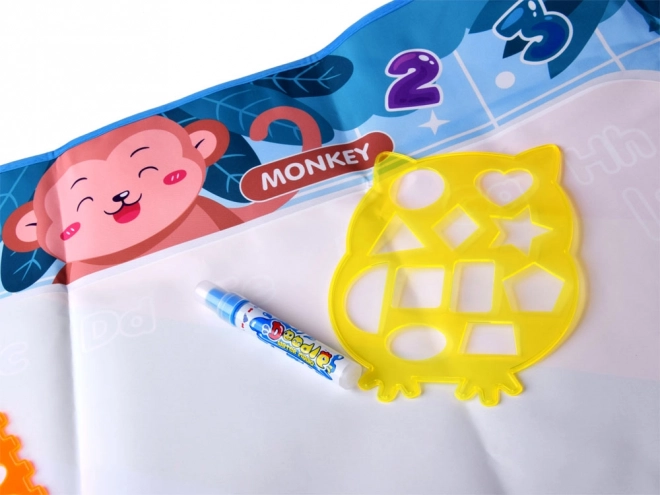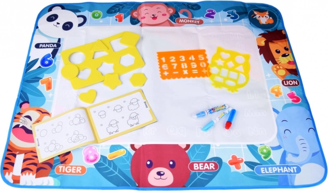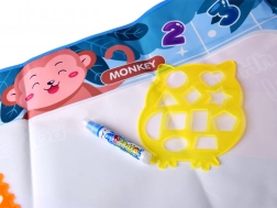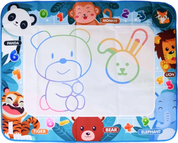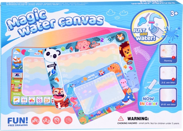Questo tappetino colorato di dimensioni 98 x 78 cm ha uno sfondo vivace che trasforma ogni creazione in un capolavoro dipinto. I bordi del tappetino sono decorati con immagini di animali con nomi in inglese, permettendo ai bambini di imparare l'inglese giocando. Giocare è completamente sicuro – basta riempire il pennarello con acqua e iniziare a disegnare, dipingere o scrivere.