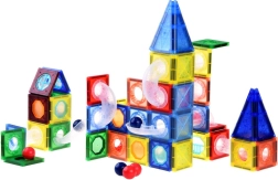 Presentiamo le costruzioni magnetiche che permettono ai bambini di costruire i propri circuiti di biglie. Questo set include 123 pezzi, tra cui pezzi magnetici e parti in plastica per lo scivolo delle biglie. I bambini godranno ore di divertimento mentre sviluppano la loro creatività e imparano colori e forme.