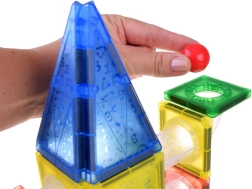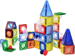 Il set si collega molto facilmente, consentendo ai bambini di creare vari tipi di labirinti e scivoli e contemporaneamente far correre le biglie attraverso di essi. Oltre ai pezzi magnetici e plastici, il set include anche un manuale illustrato.