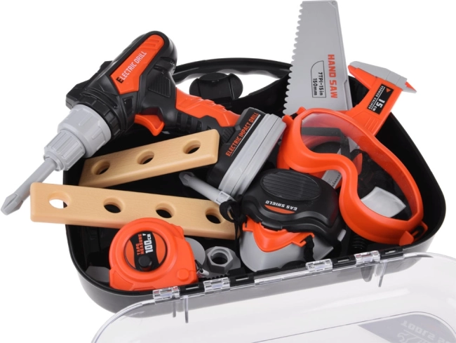 Questo set di attrezzi è progettato specificamente per i bambini, consentendo giochi sicuri e divertenti come artigiani e fai-da-te. Il set per bambini include vari strumenti che sembrano realistici ma sono sicuri per l'uso dai giovani tecnici.