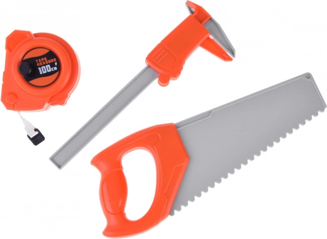 Il set include vari strumenti come un metro o viti e dadi che stimolano la creatività dei bambini durante i loro giochi.