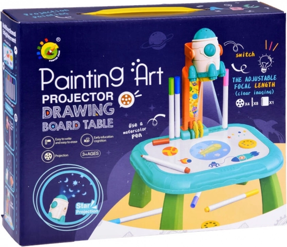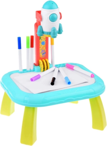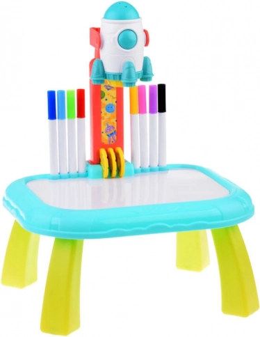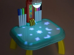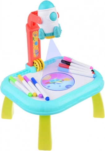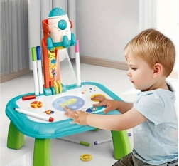 Risvegliate la fantasia dei bambini con il tavolino con proiezione Kosmos. Grazie al proiettore a forma di razzo vengono proiettate immagini sulla superficie o sulla parete, che i bambini possono ricalcare facilmente imparando i movimenti corretti. Il gioco sviluppa creatività, motricità fine e capacità di concentrazione, ideale per bambini dai 3 anni in su.