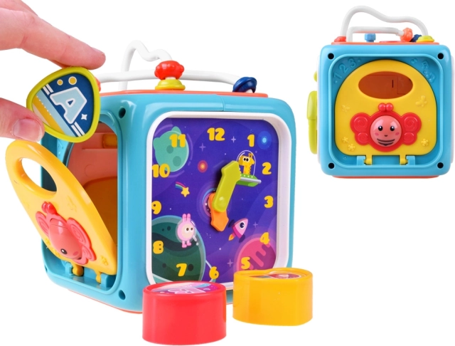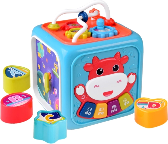 Colorato cubo interattivo per bambini da 18 mesi che unisce in un unico gioco pianolino, labirinto di perline, inserimento forme, rotelle girevoli, apprendimento dell’ora e volante. Supporta motricità fine, coordinazione occhio‑mano, riconoscimento di forme e colori e sviluppo sensoriale. Le dimensioni compatte sono ideali in viaggio; melodie e suoni allegri intrattengono a lungo.