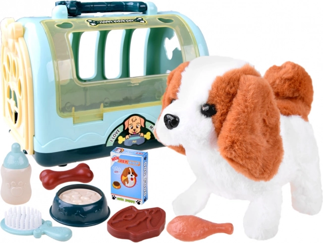 Cagnolino beagle di peluche interattivo con trasportino portatile e accessori per l’alimentazione
