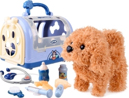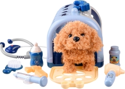 Adorabile cagnolino di peluche interattivo in un trasportino portatile che farà felici tutti i piccoli amanti degli animali. Il set include stetoscopio, siringa, otoscopio, martelletto neurologico, spazzola, boccetta e altri accessori per giocare al veterinario. Il cagnolino cammina, abbaia, scodinzola e, se accarezzato sulla testa, emette suoni da cucciolo – un gioco ideale per sviluppare empatia e fantasia.