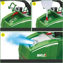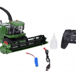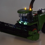 La maggiore attrazione è la realistica funzione fumo: basta aggiungere acqua dalla boccetta in dotazione, attivare il fumo dal radiocomando e dal tubo di scarico uscirà una sottile nebbiolina con illuminazione. La barra falciante mobile ha un convogliatore rotante, può essere alzata e abbassata, il braccio della tramoggia ruota di 360°. L'asse posteriore è motrice e consente la regolazione della convergenza. Le ampie ruote in gomma garantiscono stabilità e trazione.