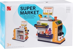 La parte refrigerata con sportello contiene yogurt, succhi, dessert e altri alimenti finti. Ideale per giocare alla caffetteria, al negozio e alla cassa self-service.