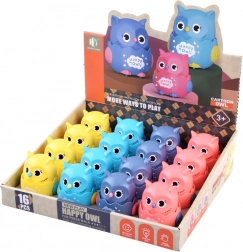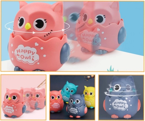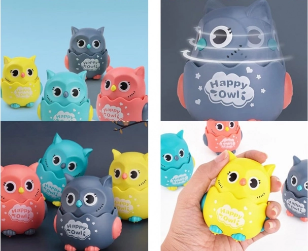 Una gufetta colorata in plastica con rotelle porta divertimento per i più piccoli. Basta posarla su una superficie piana, premere la testolina e la gufetta parte in avanti. Grazie alle dimensioni compatte adatte alla manina dei bambini è ideale per i primi giochi, e favorisce movimento, gattonamento e coordinazione. Ruotando la testa si sente un piacevole sonaglio, che stimola i sensi del bambino e può fungere anche da giocattolo antistress.